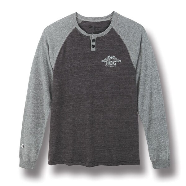 Vintage Henley Shirt(0)No Reviews yet Limited Stock Limited to Stock on HandTri-blend 50% polyester, 37% combed ring spun cotton, 13% rayon vintage heather gray and black henley knit shirt Two button placket Distressed H.O.G. Eagle logo screened on left chest in gray Imported Sizes M-3X SKU: 4502522 Order Grid Summary 0 Subtotal$0.00 Add 0 items to Cart Details Tri-blend 50% polyester/37% combed ring spun cotton/ 13% rayon vintage heather gray and black henley knit shirt with a two button placket. Distressed ... Details Back DetailsTri-blend 50% polyester/37% combed ring spun cotton/ 13% rayon vintage heather gray and black henley knit shirt with a two button placket. Distressed H.O.G. Eagle logo screened on left chest in gray. Imported. Sizes: M-3X.Limited to Stock on Hand Reviews 0 Back Ratings & ReviewsNo reviews availableBe the first to Write a Review